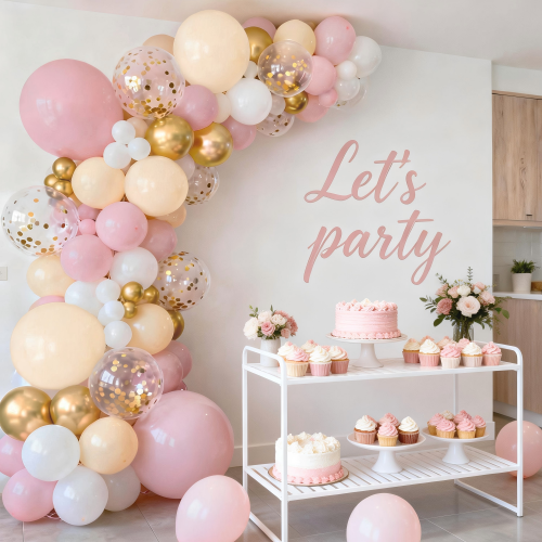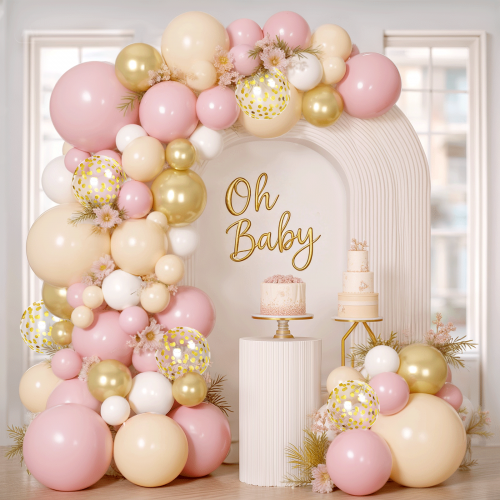 • Pink and Gold Balloon Arch Kit: This pink and white balloons is designed to complement a variety of popular themes, such as proms, weddings, birthday parties, and bohemian-style parties. The pink balloon garland includes dusty pink balloons, white balloons, nude balloons,and chrome gold balloons for an added touch of elegance. This pink balloon arch kit stands out with its unique color combination and is the perfect pink white and gold balloons for creating a stunning, photo-worthy display.