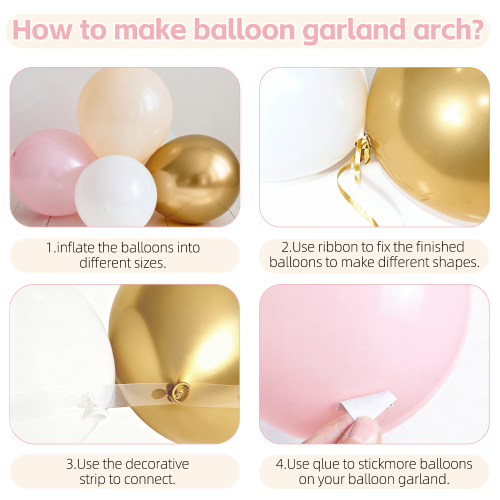 • After-Sales Service: If the pink and gold balloon arch kit you received are leaking or obviously damaged, please contact us in time. We provide after-sales service to ensure that your shopping experience, allowing you to focus on the joyful preparations for the party.
